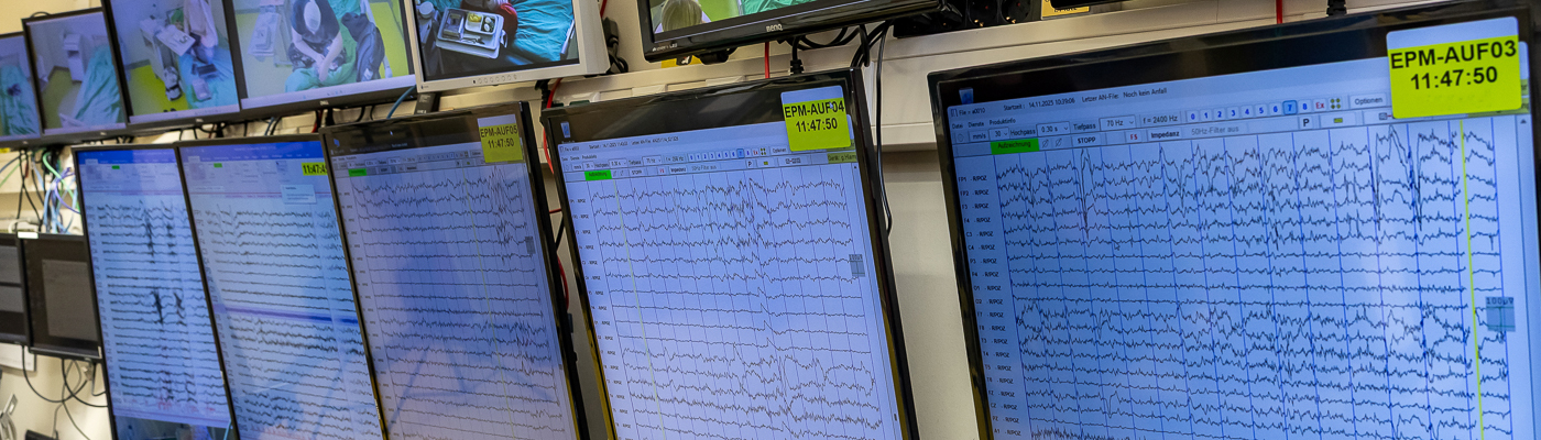 • Elektroenzephalographische Diagnostik (EEG): Routine-EEG inkl. der Provokationsmethoden wie Fotostimulation und Hyperventilation, 24-72 Stunden-Video-EEG und Video-EEG-Intensiv-Monitoring mit dicht gesetzten Elektroden (Oberfläche und intracraniell) im Rahmen der prächirurgischen Diagnostik.